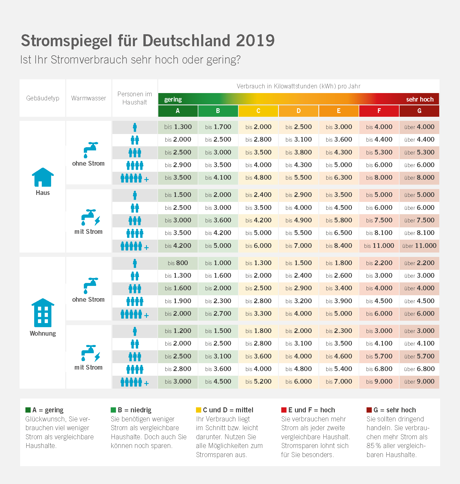 Dabei schont bewussterer Umgang mit elektrischen Strom nicht nur den eigenen Geldbeutel, sondern hilft auch dabei, die bei der Stromerzeugung anfallenden klimaschädliche CO2-Emissionen zu reduzieren. Um die Verwirklichung unserer energie- und umweltpolitischen Ziele zu unterstützen, haben sich zahlreiche Verbraucherorganisationen, Wirtschaftsverbänden, Energieagenturen und Forschungseinrichtungen zusammengeschlossen und einen STROMSPIEGEL erstellt. Er liefert bundesweit gültige Vergleichswerte für den Stromverbrauch in Privathaushalten.